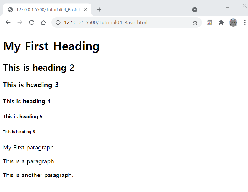 - <h6>은 가장 덜 중요한 것을 정의하므로 순서대로 쓰면 아래 예제처럼 점점 아련해진다...★