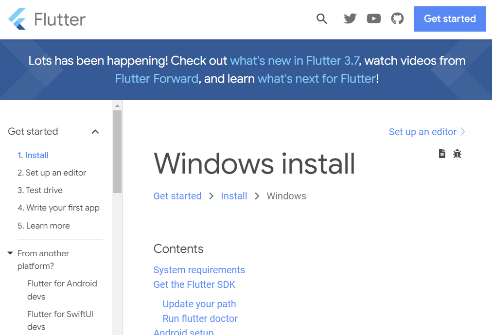 https://docs.flutter.dev/get-started/install/windows#get-the-flutter-sdk