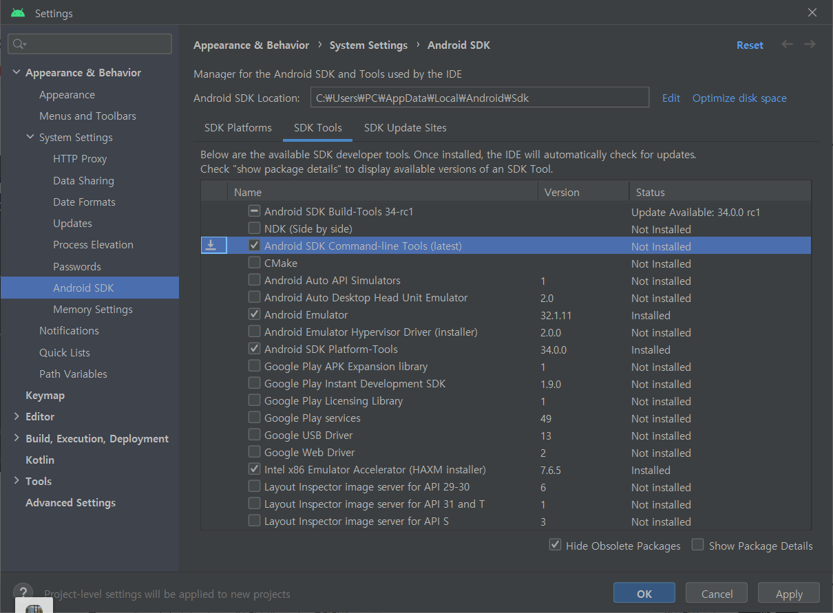 2-2. More Actions 에서 SDK Manager 눌러서 Android SDK Command-line Tools 설치