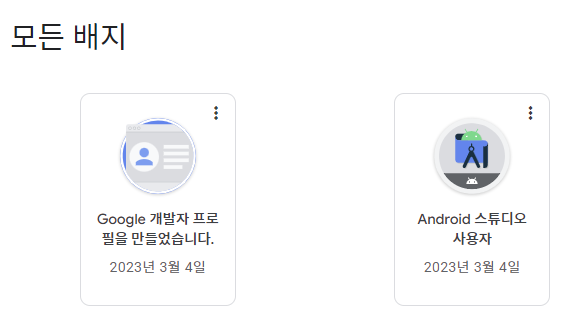너무 귀여운건 안드로이드 스튜디오 설치를 하니까 구글에서 '우리 안드로이드 개발 프로그램을 설치했어?' 하고 배지를 하나 발행해주는데 이런 소소한 귀여움 대만족. 💕