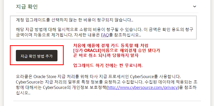 곧바로 취소되니까 당황하지 말자. 업그레이드하기 전에는 찐 무료니까.