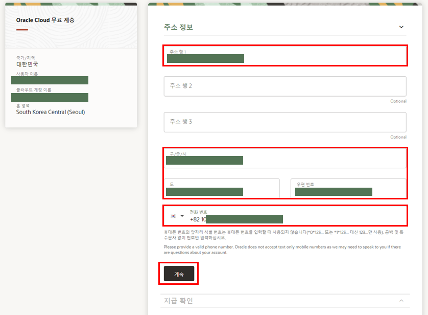 오라클 클라우드 가입할 때는 앞자리 식별번호 (0)은 생략하고 10부터 뒤 8자리 적어주면 된다 (함정 카드 발동!)