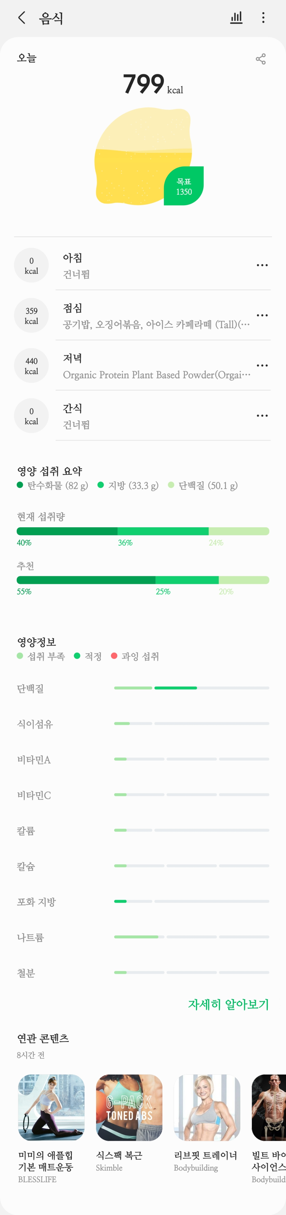 심장이 너무 심하게 펄떡거려서 중간에 그만할까 하다 이틀 쉰 벌?로 머신 하나까지 추가해서 랫풀다운까지 하고 온 몸에 힘이 빠진 상태로 마무리. + 오늘부터 식단 일기 추가